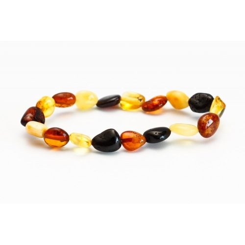 - Genuine Baltic Amber Teething Necklaces and Bracelets are made for wearing, NOT chewing. They are NOT designed for putting in the mouth. Parent supervision is recommended at all times when baby wears a necklace and your child should NEVER be left alone with a necklace or bracelet on. Always remove your amber necklace or bracelet from baby when baby is sleeping or unattended. As an alternative, you may wish to wrap the necklace around your baby's ankle, under a sleeper or socks. This is considered jewelery and should be treated as such.