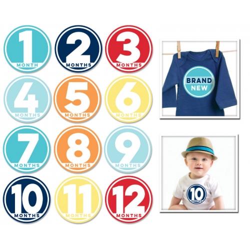 - Set includes 13 stickers for baby's 1st year (1 - 12 months + a "Brand New" newborn sticker)